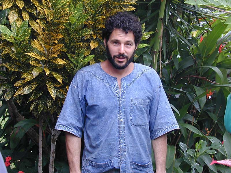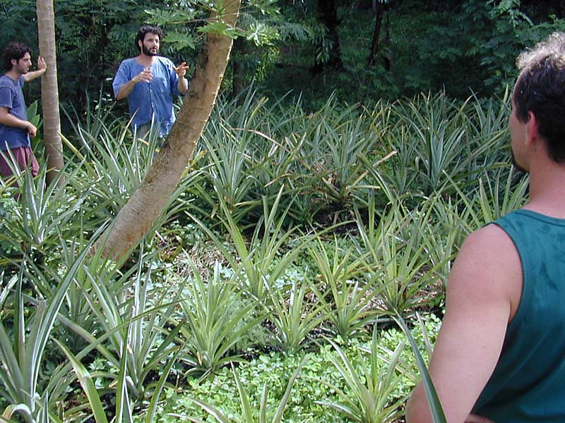 ![]() click here for Hi Res image Menice, founder of Pangaia, greets the group. Pangaia folks are into eating raw foods and have over 100 species and 150 varieties of fruit trees. Also check out the Pan Gaia Web Site. |