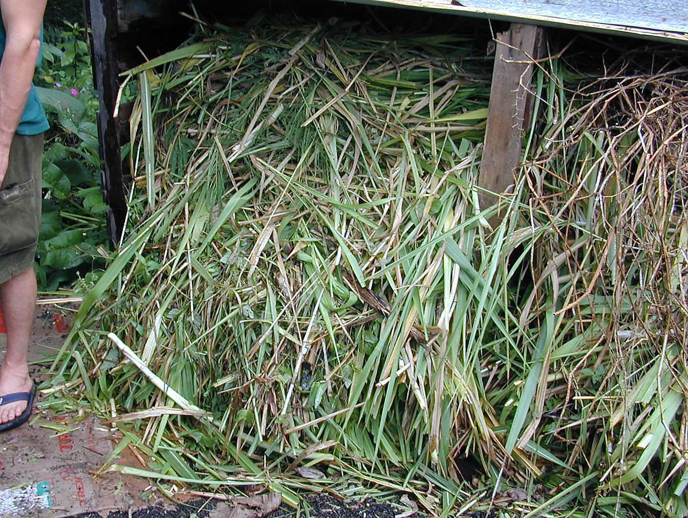 ![]() click here for Hi Res image Cane grass compost piles are covered so that the nutrients don't leach out in the heavy rainfall. |