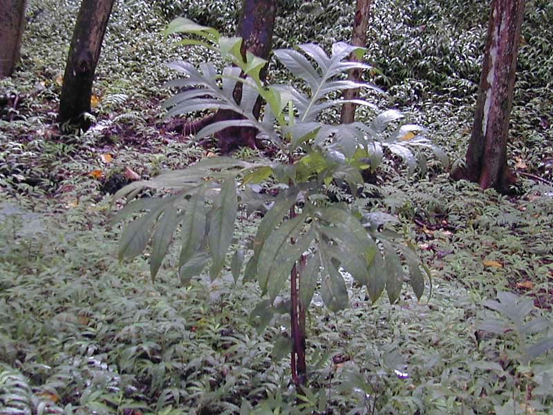Name: Bread Fruit Tree Notes: This baby tree propagated naturally from root stock. |