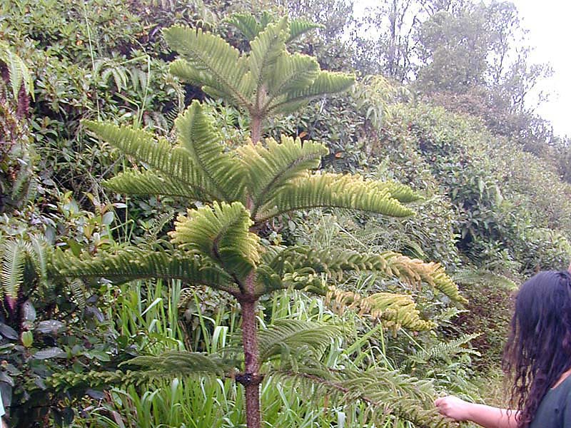 Hawaiian Name: Hapu'u (tree fern) | Scientific Name: Cibotium glaucum Notes: Endemic to Hawaii. Notice the thick trunk of the tree under its leaves. |