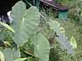 Hawaiian Name: Kalo | Name: Taro | Scientific Name: Colocasia esculenta Notes: One of the canoe plants brought to Hawaii. This perennial herb, with it many edible parts, is a very important food source for peoples through out polynesia. It also has strong cultural significance. |