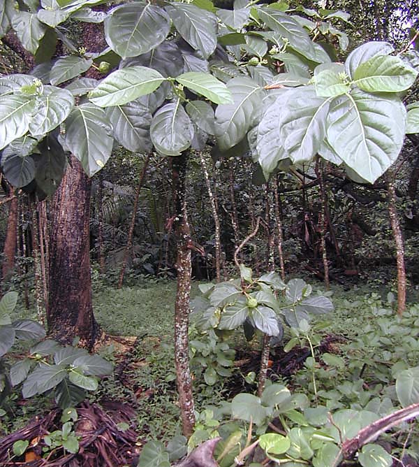 Hawaiian Name: Noni | Name: Indian mulberry | Scientific Name: Morinda citrifolia Notes: Brought in the Polynesian canoes. High medicinal value and used as a dye. Notice the baby noni in the image. |